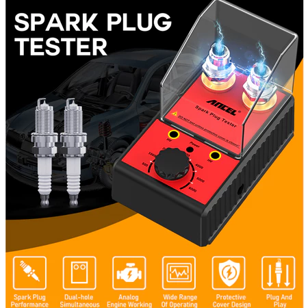 ANCEL Car Spark Plug Tester is for testing the performance and strength of spark plugs. The product simulates actual engine conditions and works up to 6000rpm. It is compatible with all spark plug tests for crankshaft engines and motorcycles on the market. It can also test two holes at the same time and is designed with a protective cover to ensure the safe operation of maintenance personnel during the test.